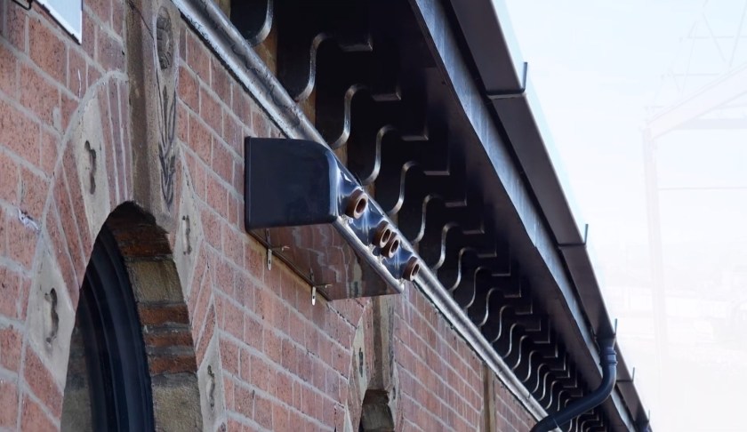 With scaffolding already up and the roof and guttering newly finished, it was too late to retrofit swift bricks into the fabric of the building. Instead, two Impeckable four-chamber swift nest boxes, colour-matched in anthracite to blend with the gutters and downpipes, plus a Peak Boxes solar-powered swift caller were chosen.