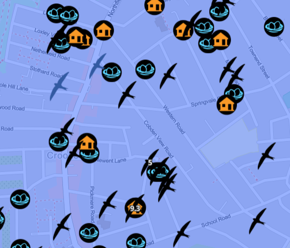 The Sheffield & Rotherham Wildlife trust has recently launched the Sheffield Swift City Map! It shows: